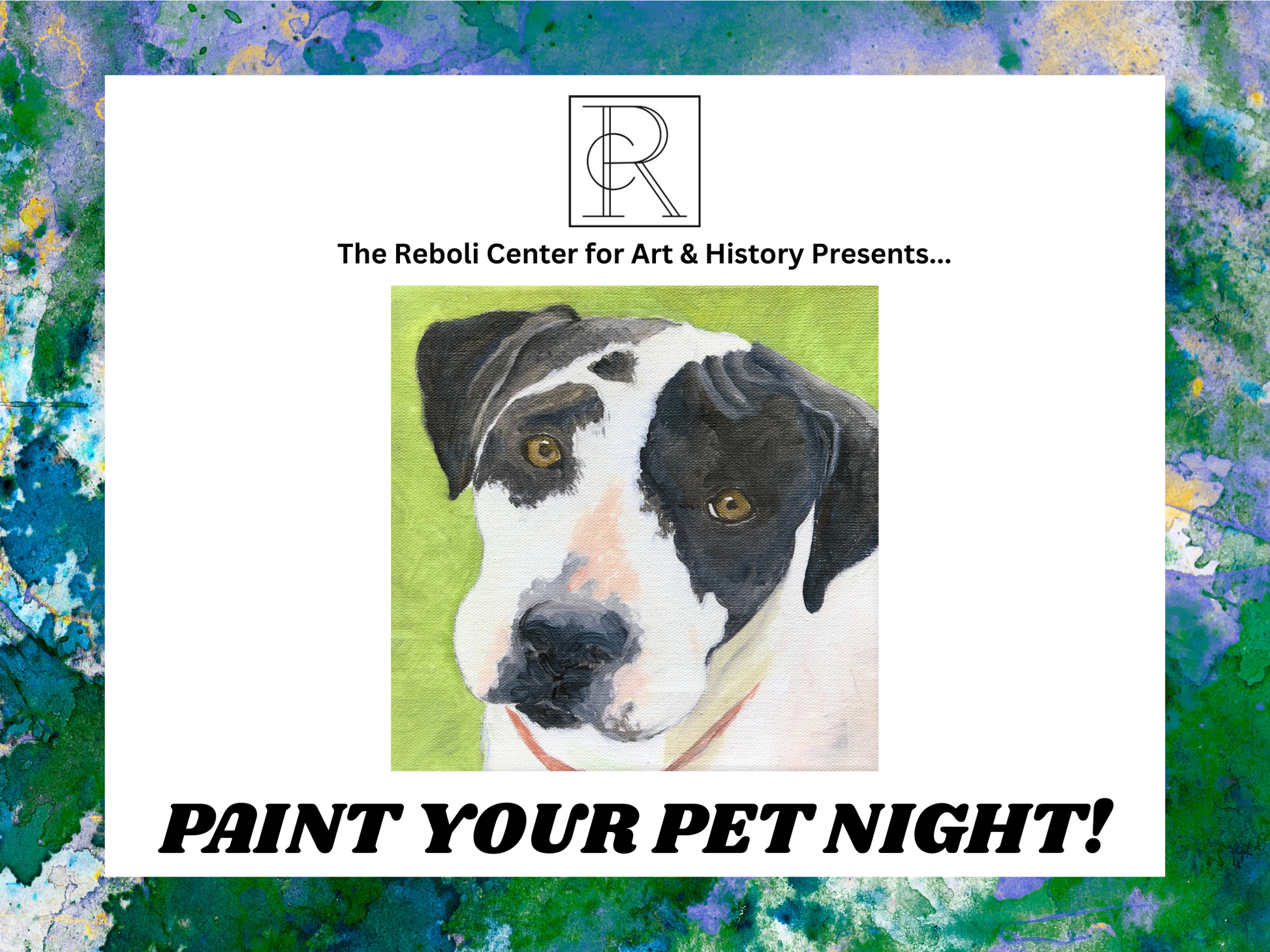 Join Reboli Center staff for an exciting Paint Your Pet Drawing Workshop on Weds evening, December 3rd, 2025, from 6pm - 9pm at The Reboli Center! All painting mediums are welcomed. Featured artwork by Lois Reboli.